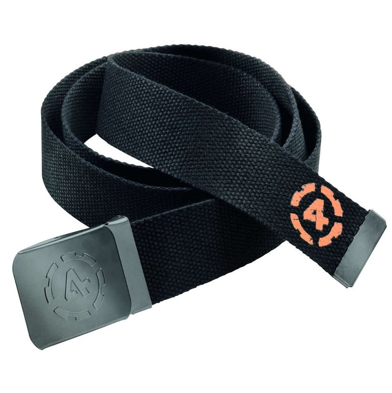 Helposti säädettävä kangasvyö metallisoljella. Soljessa ”4”.
