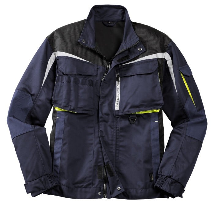 Kestävä Stretch/jousto työtakki ARKANSAS joustotyötakki on helppohoitoinen, kestävä ja istuu erinomaisesti vartaloa halkaiseva leikkauksen ja joustokankaan ansiosta. Tummansininen / Harmaa
